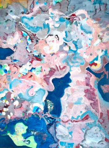 A path of many directions: searching, swirling, considering, relenting, asserting, blending, covering and revealing. The colors are committed but the shapes in time, amorphous but layed out like a well rehearsed dance only to be commanded suddenly to change and then dissolve.