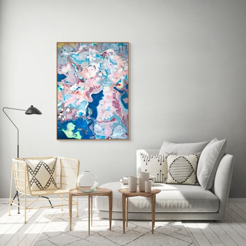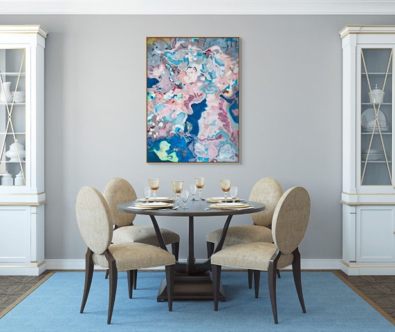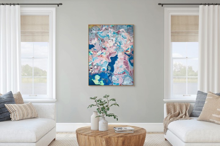 Use the Augmented Reality feature to view paintings in your space. Augmented reality is the process of using a smartphone or tablet to alter the existing picture, via an app. The user stands in front of a scene and holds up their device. It will show them the selected painting on their wall. Use the 'View in AR' button below to activate this feature.