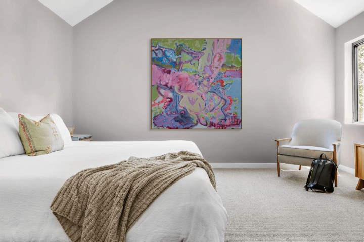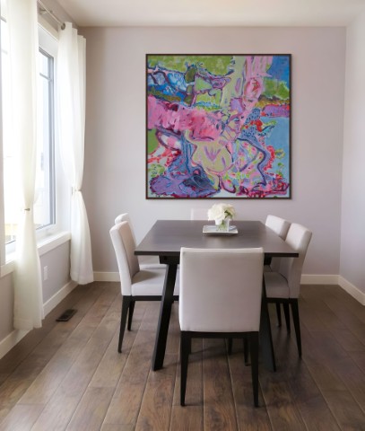 In creating ‘State of Being’, I sought to explore a sort of visceral tapestry. The rivers and ponds of color and shapes became a cathartic, movement scape.